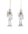 Realizzate con cura nei dettagli, presentano due diverse versioni: uno Schiaccianoci Soldato con Spada e uno Schiaccianoci Re con Scettro. I colori bianco e argento donano luminosità e si abbinano facilmente a qualsiasi palette decorativa natalizia.
