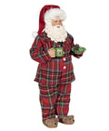 Statuetta Babbo Natale in Pigiama Scozzese con Tazza e Biscotti – 28 cm