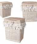 Cesta Portabiancheria “Lace” in Rattan Naturale – Singola con Volant e Fiocco (Grande, Media o Piccola)