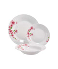 Servizio Piatti in Porcellana 18 Pezzi – Decoro Floreale Rosa – Piatto Piano Ø 26,5 cm, Fondo Ø 22 cm, Frutta Ø 19 cm
