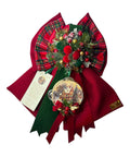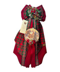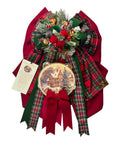 Il Fioccò “Eleganza Scozzese” è realizzato in velluto tartan e rosso intenso, impreziosito da decorazioni natalizie e da un pendente a tamburello con delicato paesaggio innevato, che richiama tutta la magia delle feste.