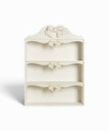 El marco de madera está acabado con una delicada pintura color crema y adornado con tres lazos en relieve , que se adaptan perfectamente al estilo de Kaluka Home. Los estantes son amplios y resistentes, ideales para exhibir platos decorativos, tazas, especias, adornos o pequeños objetos de colección.