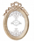 Diseño ovalado con lazo decorativo.