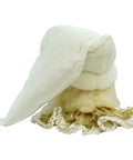 El sombrero oversize de terciopelo blanco, la barba suave y trabajada y los detalles dorados de la capa hacen de esta decoración una pieza importante, ideal para ambientes shabby chic, de lujo o tradicionales.