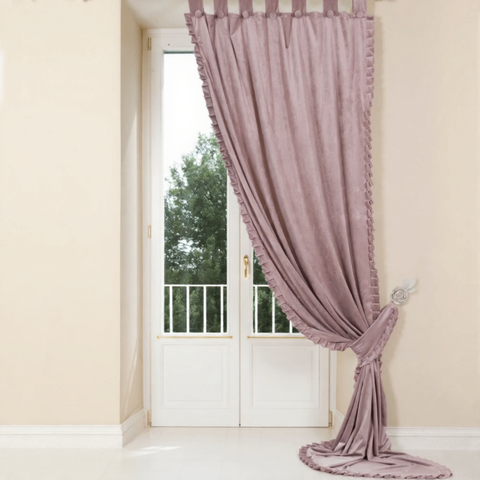 Par de cortinas plisadas malva con cenefa – 150 x 300 cm en un elegante estilo