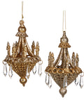 Aggiungi un tocco lussuoso e scintillante alle tue decorazioni natalizie con queste eleganti decorazioni a forma di lampadario, firmate Goodwill M&G. Realizzate con una raffinata finitura glitter dorata e champagne e impreziosite da pendenti effetto cristallo, sono disponibili in due varianti con design leggermente differenti.