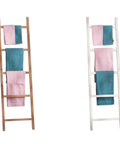 Porta un tocco naturale e raffinato ai tuoi ambienti con la scala decorativa in legno Kaluka, perfetta per appendere plaid, asciugamani o semplicemente per aggiungere un elemento d’arredo originale al tuo spazio.