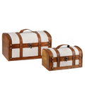 Raffinato ed elegante, questo set di 2 bauli decorativi Goodwill unisce lo stile vintage alla morbidezza della pelliccia effetto fur. Realizzati in legno con finitura color miele e rivestimento in tessuto crema, i bauli sono impreziositi da dettagli in metallo brunito e cinturini decorativi che richiamano l’estetica dei classici forzieri da viaggio.